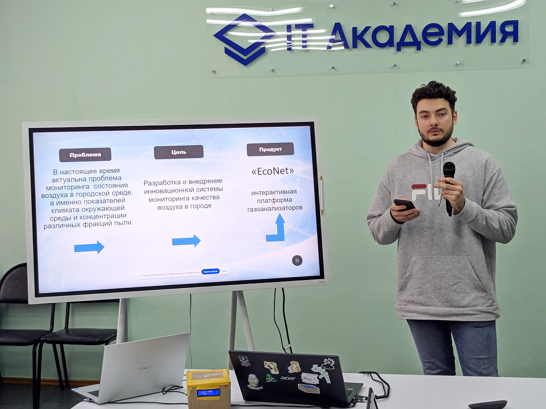 2 место - команда Эво Как с проектом автоматизированной системы управления и реагирования на превышение концентрации различный фракций пыли с использованием микроконтроллеров для анализа качественного состава воздуха с возможностью просмотра статистики на web-ресурсе.